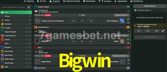 O Bigwin oferece uma grande seleção de opções de apostas em e-sports com probabilidades competitivas
